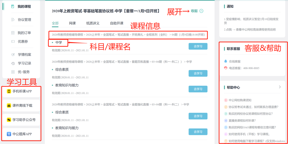自助服務:PC幫助中心、中公網校APP幫助指南