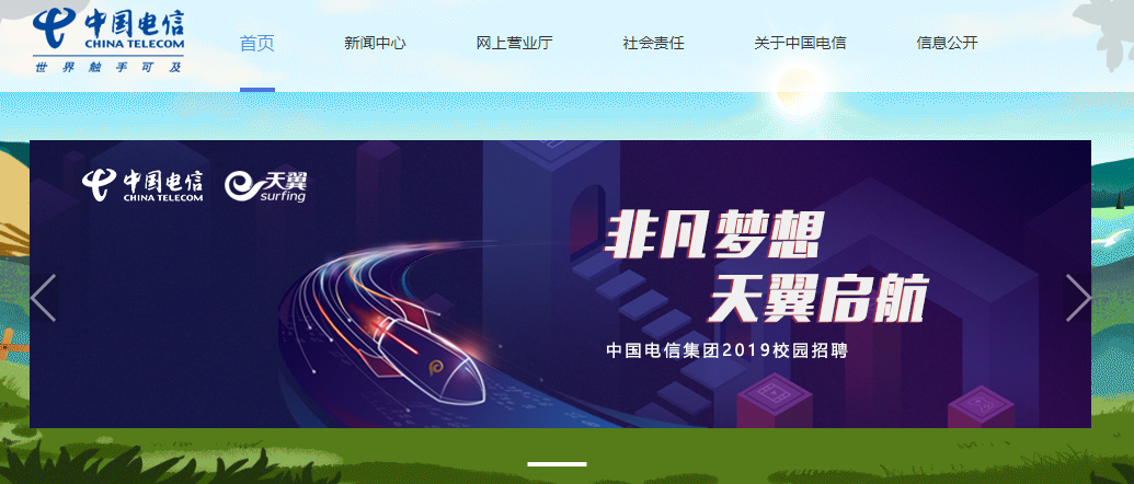 中國電信招聘官網是http://www.chinatelecom.com.cn/,官網見下圖所示: