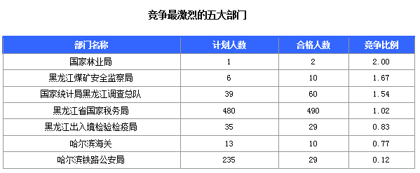 截止15日17時,招錄比例的職位為黑龍江省國家稅務局齊齊哈爾市富拉爾基區國家稅務局科員一職,招錄2人,通過人數48人,競爭比24:1。