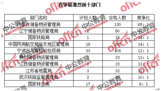 從部門報名情況來看,國稅依然毫無懸念的報名人數(shù)都在前列,這與國稅本身招錄人數(shù)多不無關(guān)系。有趣的是,中公網(wǎng)校專家發(fā)現(xiàn),競爭比最激烈的部門為內(nèi)蒙古儲備物資管理局,競爭比65:1,與去年相同的是,都是來自內(nèi)蒙古,去年同期最熱部門為內(nèi)蒙古自治區(qū)地震局,競爭比60:1。