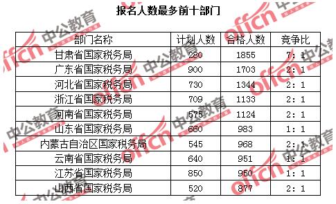 合格人數(shù)前十部門國稅“大滿貫”,競爭最激烈部門依然來自內(nèi)蒙古。