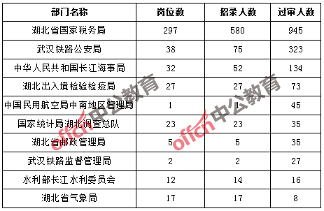 截止到10月16日16時,湖北地區各部門報考人數如下: