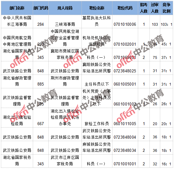 【截至16日16時】2017國考報(bào)名湖北1643人過審,最熱崗位103:1