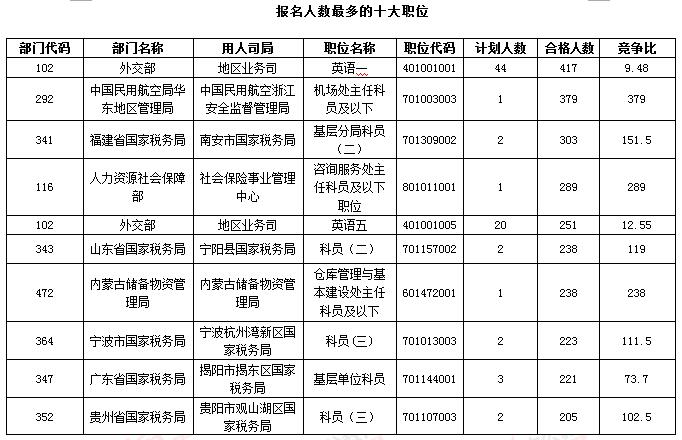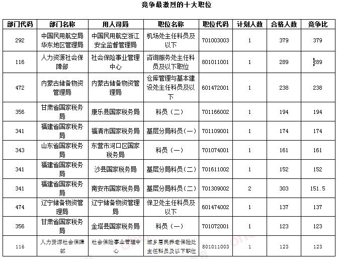 一、今日最熱十大職位:中國民用航空局華東地區管理局職位最熱國稅占據六席