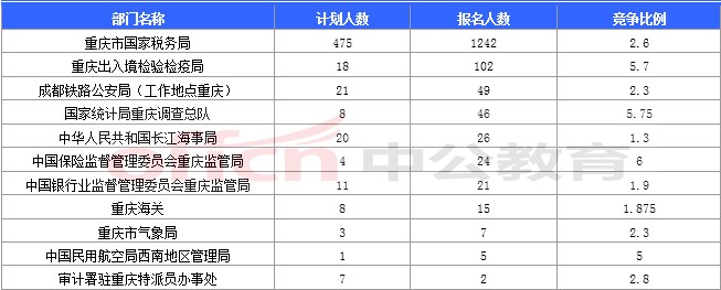 為幫助廣大考生更清晰的了解今日報名情況,重慶中公網校整理了審核通過人數的部門,此數據供廣大考生參考: