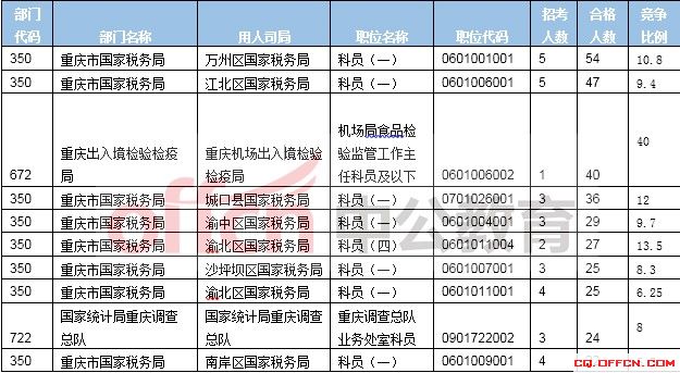截止到15日16時,競爭比例的職位為‘重慶出入境檢驗檢疫局’一職,招錄1人,截止到17日8時通過人數為40人。