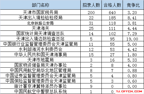 截止到17日16時,通過審核人數前三位的部門依次是:天津市國家稅務局、天津出入境檢驗檢疫局、北京鐵路公安局,三部門通過審核總人數達943人,占通過審核總人數的66.22%。