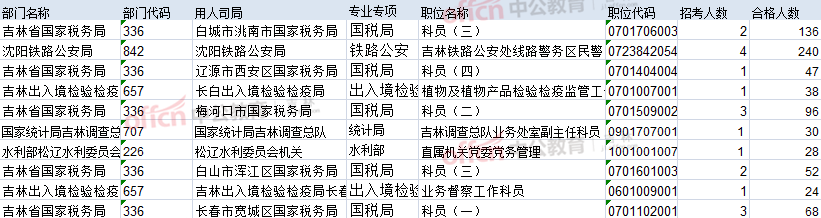 報名通過審核人數前十的職位主要集中在吉林省國稅局和國家統計局吉林調查總隊,具體信息如下: