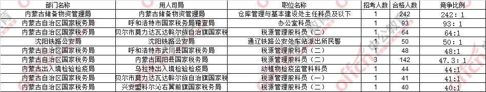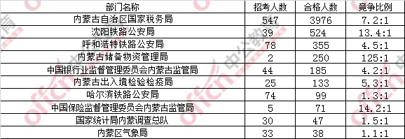 為幫助廣大考生更清晰的了解今日報名情況,內蒙古中公教育整理了審核通過人數前十位的部門,供廣大考生參考:
