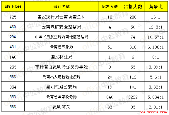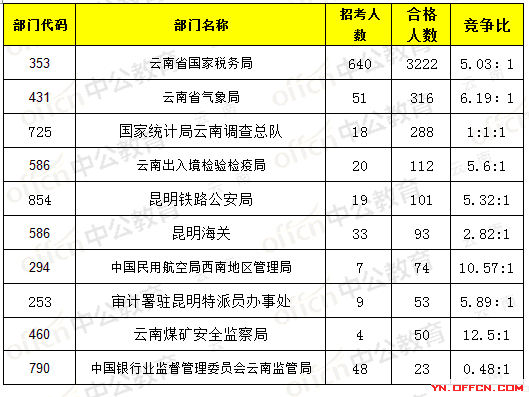 為幫助廣大考生更清晰的了解今日報名情況,云南中公教育整理了審核通過人數部門排名,供廣大考生參考:
