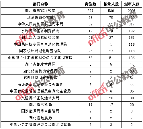 截止到10月17日16時,湖北地區各部門報考人數如下: