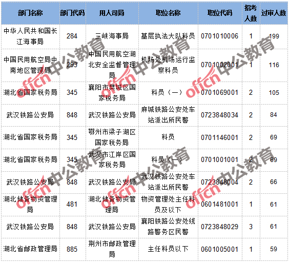 中國民航空中警察總隊系統、武漢海關、國家土地督察武漢局、無人通過審核。