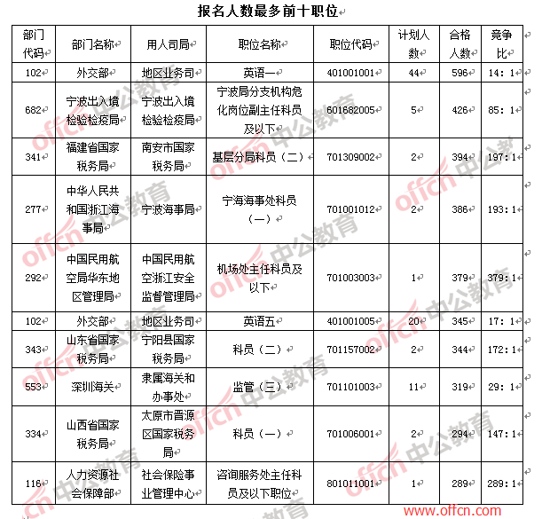 截至17日16時:2017國考報名外交部蟬聯(lián)“人氣”