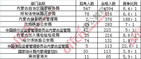 為幫助廣大考生更清晰的了解今日報名情況,內蒙古中公網校整理了審核通過人數前十位的部門,供廣大考生參考:
