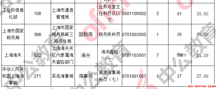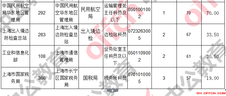 報名通過審核人數前十的職位主要集中在上海出上海海關、上海出入境邊防檢查總站、中國民用航空局華東地區管理局,具體信息如下: