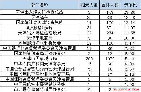 為幫助廣大考生更清晰的了解今日報名情況,天津中公網(wǎng)校整理了審核通過人數(shù)前五位的部門以及競爭比例最激烈的五大部門,供廣大考生參考: