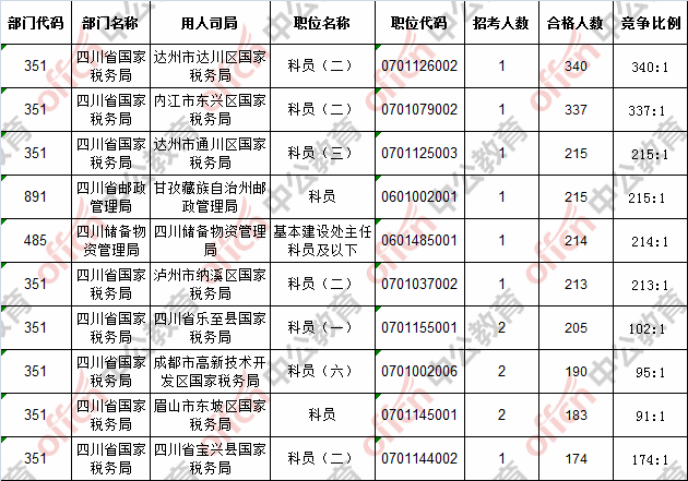 首日報名通過審核人數前十的職位主要集四川省國家稅務局等部門,具體信息如下: