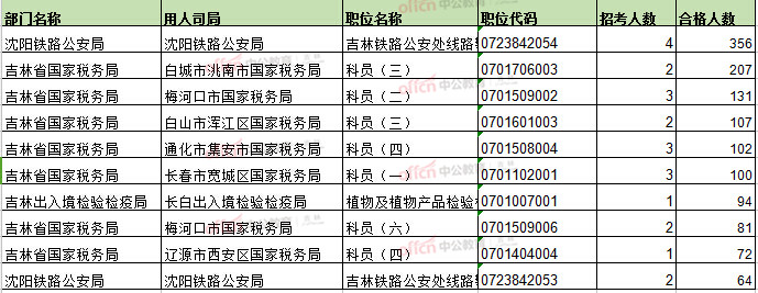 報名通過審核人數前十的職位主要集中在吉林省國稅局和國家統計局吉林調查總隊,具體信息如下: