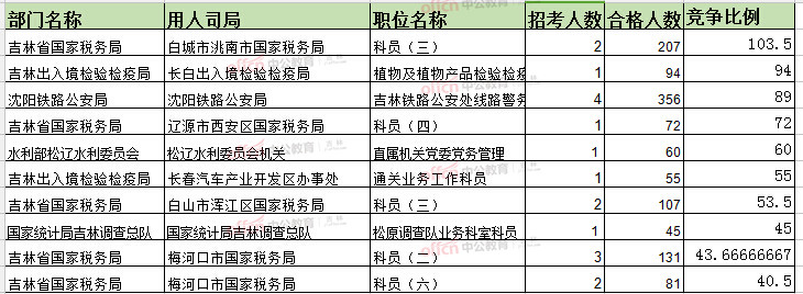截止到18日16時,競爭比例的職位為白城市洮南市國家稅務局科員(三)一職,招錄2人,截止到17日16時通過人數為136人。