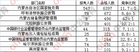為幫助廣大考生更清晰的了解今日報名情況,內蒙古中公網校整理了審核通過人數前十位的部門,供廣大考生參考: