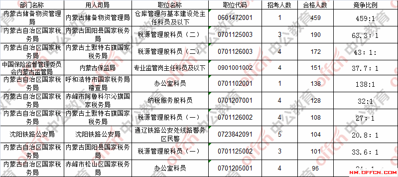報名通過審核人數前十的職位主要集中在內蒙古儲備物資管理局、內蒙古固陽縣國家稅務局、內蒙古土默特右旗國家稅務局等部門,具體信息如下: