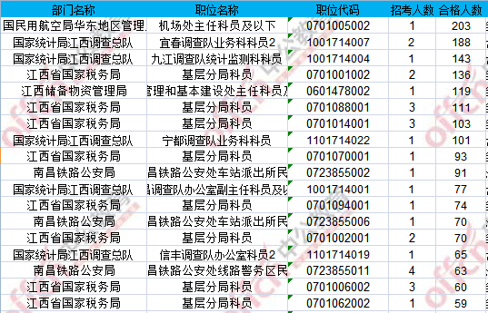 報名通過審核人數前十的職位主要集中在江西省國家稅務局、國家統計局江西調查總隊具體信息如下: