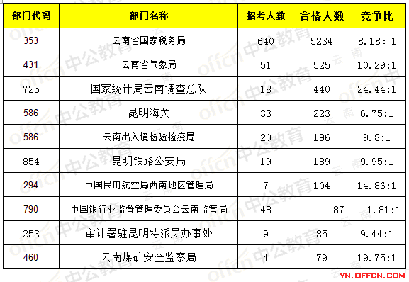 為幫助廣大考生更清晰的了解今日報名情況,云南中公網校整理了審核通過人數部門排名,供廣大考生參考: