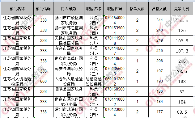 截止到19日8時(shí),競(jìng)爭(zhēng)比例的職位為江蘇省國(guó)家稅務(wù)局南京市高淳區(qū)國(guó)家稅務(wù)局科員(四)一職,招錄1人,截止到18日16時(shí)通過(guò)人數(shù)為206人。