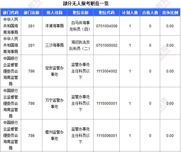 下面列舉部分無人報名職位供參考: