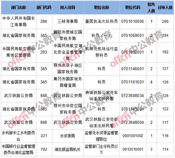 【截至19日8時】2017國考報名湖北8394人通過審核,72個職位無人通過審核