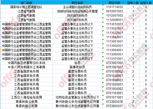 截至19日16時,據江西中公網校統計,2017國考招錄職位中工作地點在江西的職位報考人數為7548人,共有24個職位無人通過審核。