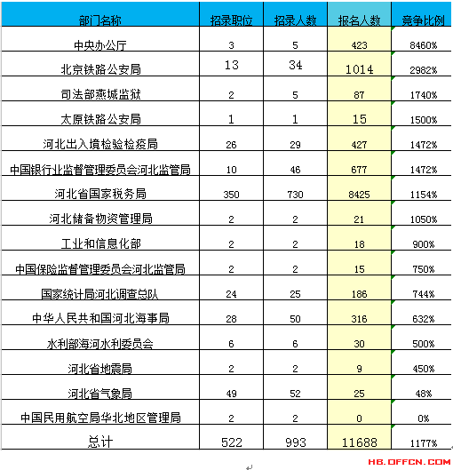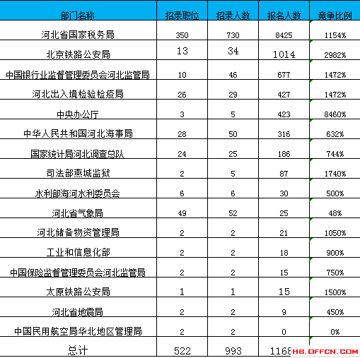 為幫助廣大考生更清晰的了解今日報名情況,河北中公網校整理了審核通過人數前十位的部門以及競爭比例最激烈的十大部門,供廣大考生參考: