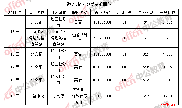 【截至19日16時】2017國考報名人數統計:細數2017國考熱門職位 三類職位最搶手