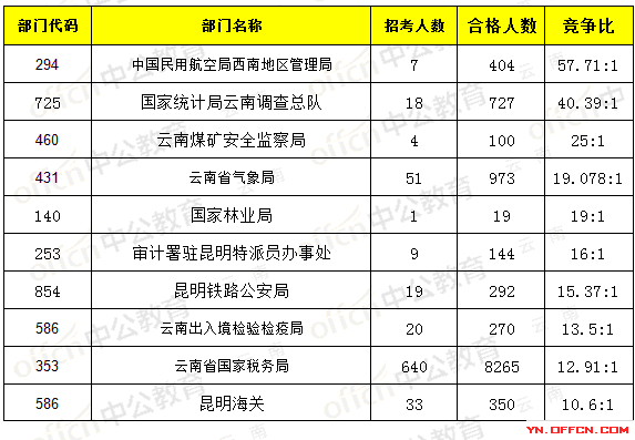 為幫助廣大考生更清晰地了解今日報名情況,云南中公網校整理了審核通過人數部門排名,供廣大考生參考: