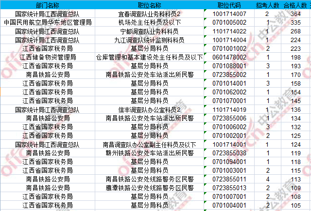 報(bào)名通過審核人數(shù)前十的職位主要集中在江西省國家稅務(wù)局、國家統(tǒng)計(jì)局江西調(diào)查總隊(duì)具體信息如下: