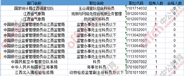截至20日16時(shí),據(jù)江西中公網(wǎng)校統(tǒng)計(jì),2017國考招錄職位中工作地點(diǎn)在江西的職位報(bào)考人數(shù)為10349人,共有13個(gè)職位無人通過審核。