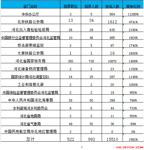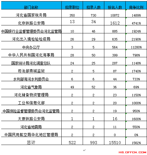 2017國考河北省地區所有職位報名情況下載表格查看: