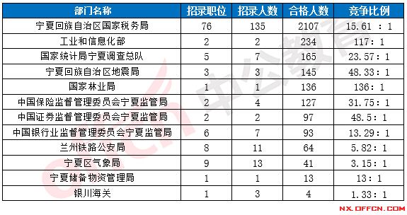 點擊查看>>>2017年國家公務員寧夏地區網上報名統計表(截止20日16時)