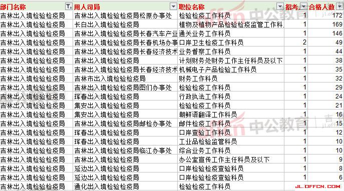 吉林出入境檢驗檢疫局報名人數最多前20崗位