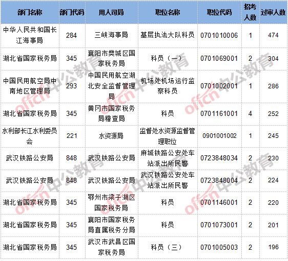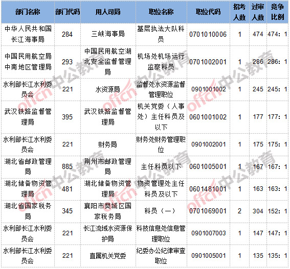 截止到10月21日8時,報名通過審核人數和競爭比例的職位為三峽海事局基層執法大隊科員一職,招錄1人,過審人數474人,競爭比例為474:1。具體信息如下: