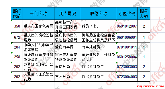 報名通過審核人數前十的職位主要集中在萬州區國家稅務局、渝北區國家稅務局、沙坪壩區國家稅務局等部門,具體信息如下: