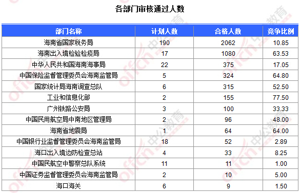 【截至21日8時】2017國考報名海南4686人過審 最熱職位259:1