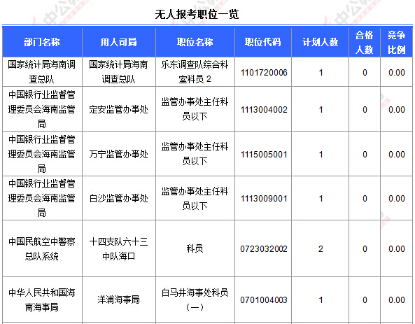 為幫助廣大考生更清晰的了解今日報名情況,海南中公網校整理今天各部門的報名情況供廣大考生參考: