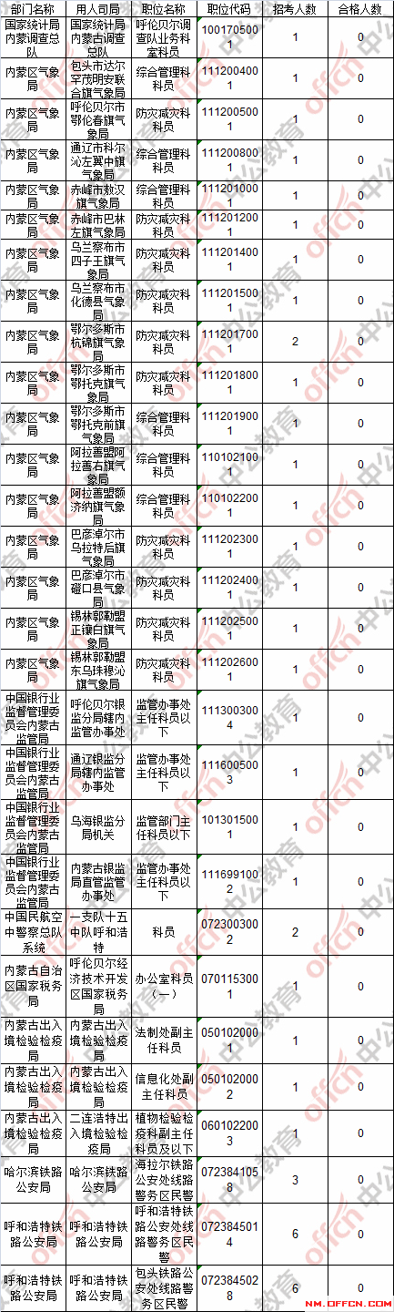 截止到21日16時,工作地點在內蒙古29個職位無人報考。具體職位如下: