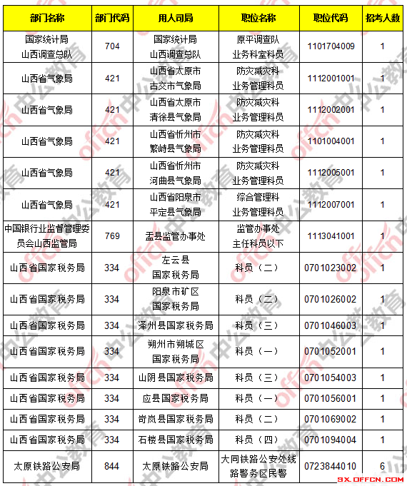 截止到20日16時,工作地點在山西的職位共有16個無人報考。下面是無人報考職位一覽表,中公網校專家建議廣大考生多關注一些較冷職位,避免激烈競爭,結合自身條件,找到屬于自己的職位。