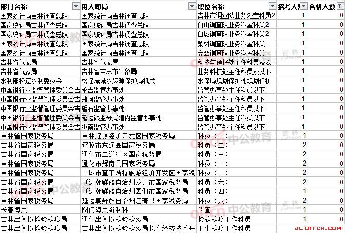 截止到21日16時,工作地點在吉林的職位共有24個崗位還無人報考。下面是無人報考職位一覽表,中公網校專家建議廣大考生多關注一些較冷職位,避免激烈競爭,結合自身條件,找到屬于自己的職位。