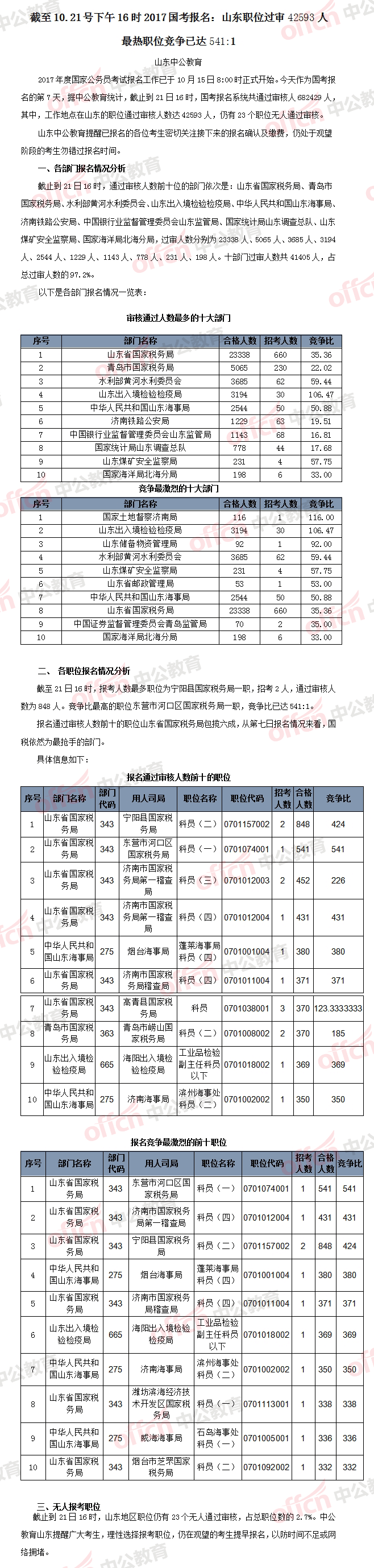 【截至21日16時(shí)】2017國(guó)考報(bào)名山東職位過(guò)審42593人 最熱職位競(jìng)爭(zhēng)已達(dá)541:1