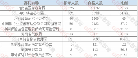 截止21日16時,通過審核人數前三位的部門依次是:河南省國家稅務局、鄭州鐵路公安局,水利部黃河水利委員會,三部門通過審核總人數22078人,占通過審核總人數的87.35%。