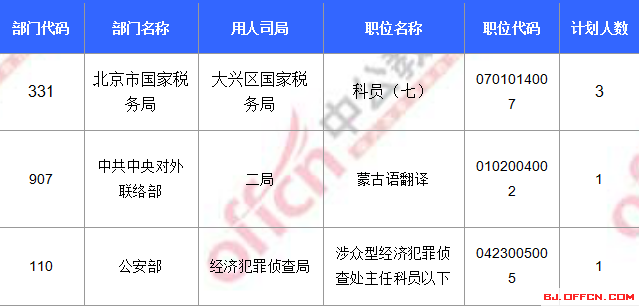 截止到21日16時,工作地點在北京的職位共有15個無人報考,占全部職位的1.3%。下面是無人報考職位一覽表,中公網校專家建議廣大考生多關注一些較冷職位,避免激烈競爭,結合自身條件,找到屬于自己的職位。