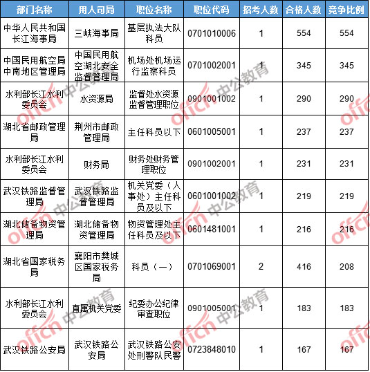 【截至22日8時】2017國考湖北地區21709人過審 最熱職位554:1